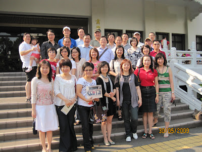 我特別把二十年前在商館前階梯拍下的團體照, 以及2009年5月30日在同地點, 同學們站立在同位置所拍的照片, 擺在一起兩相對照.